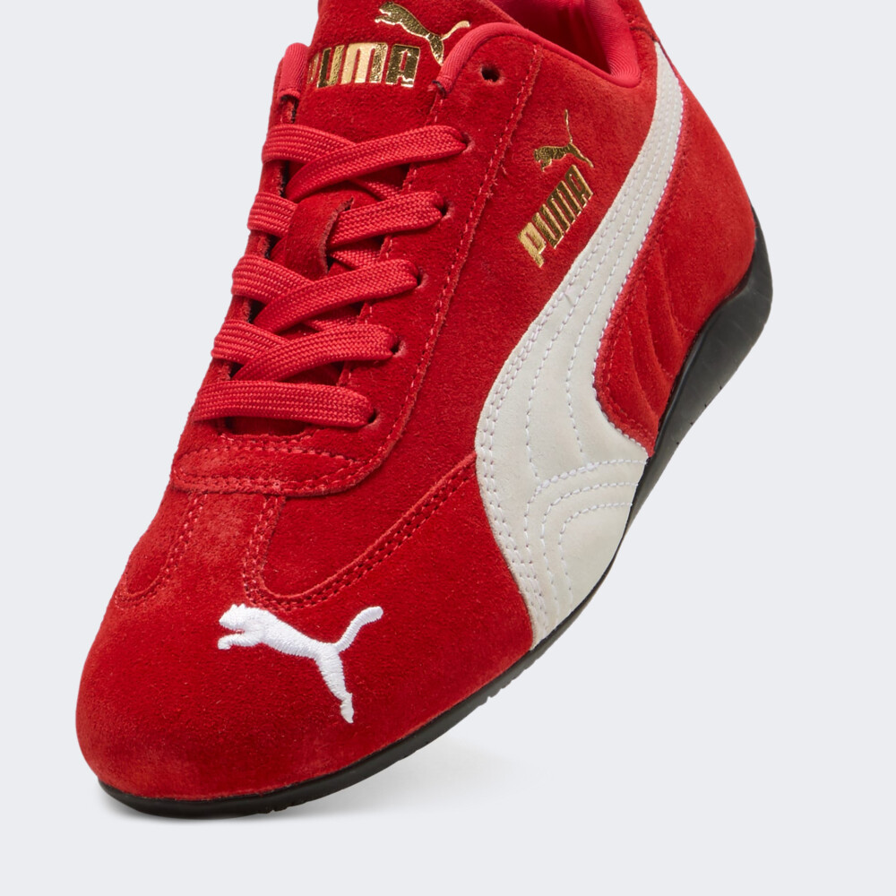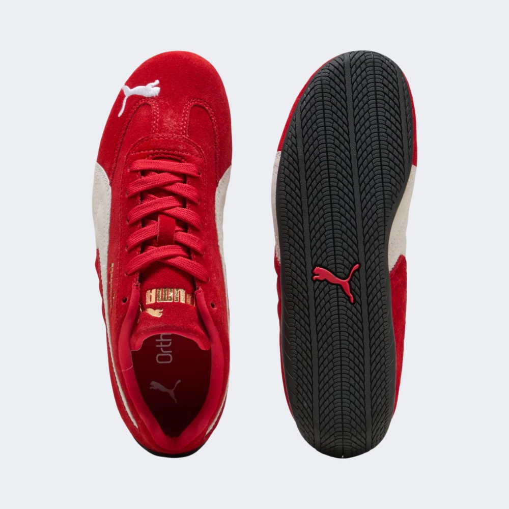 Кросівки Puma Speedcat Jr натхненні трасами для перегонів та створені для підлітків, які мріють жити на повну, бути в русі та завжди залишатися в центрі уваги. М’який замшевий верх дарує не лише стильний вигляд, а й комфорт під час насичених днів — від уроків до активних прогулянок. Класична шнурівка надійно фіксує стопу, щоб кожен крок був впевненим. Гнучка гумова підошва з чудовим зчепленням допоможе легко долати будь-які поверхні — від шкільного коридору до міських вулиць. Дизайн з плавними лініями та спортивними акцентами промовляє про швидкість, а культові смужки Formstrip і логотипи Puma підкреслюють любов до легендарної спадщини бренду. Модель рекомендована для дітей віком від 8 до 16 років.