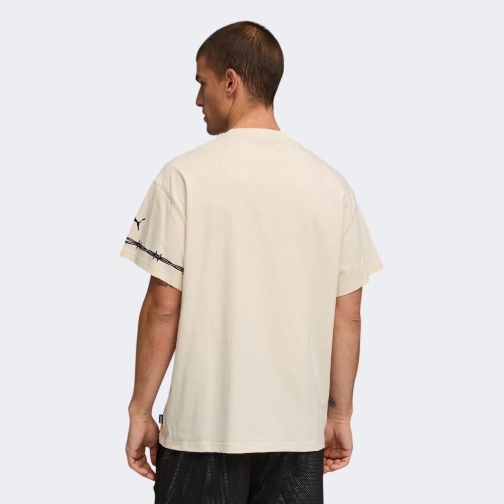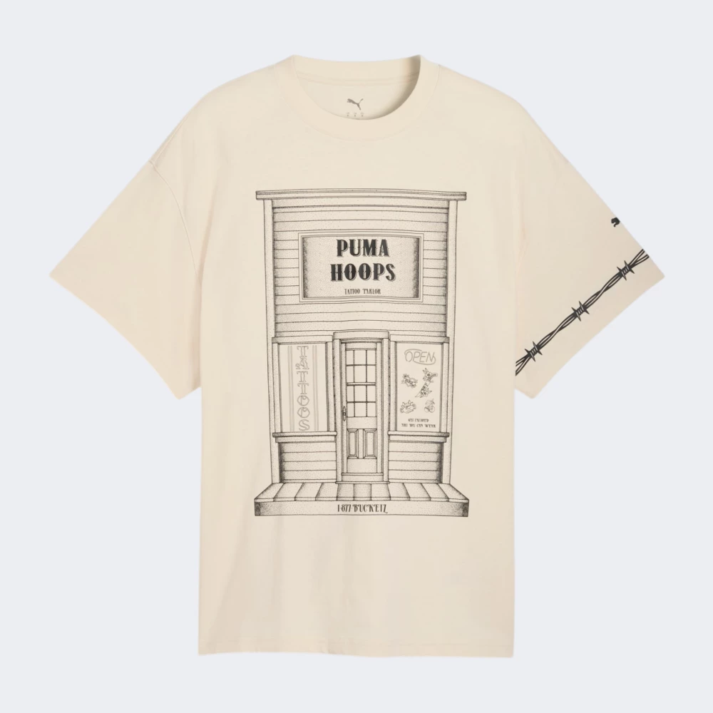 Футболка Puma Swish N' Ink Tee II додасть Вашому образу енергії вуличного баскетболу та впевненості, з якою Ви виходите на майданчик. Вона виготовлена з м’якої, приємної до тіла бавовняної тканини, тому гарантує комфорт навіть у найгарячіші моменти. Вільний крій із легко опущеною лінією плеча дарує свободу рухів, а класична кругла горловина тримає форму та забезпечує акуратну посадку протягом усієї гри. Графічний принт з написом Puma Hoops додає характеру й підкреслює баскетбольний настрій моделі. Контрастні чорні акценти на рукаві та невелика фірмова нашивка завершують образ, підсилюючи впізнаваний стиль бренду. Puma піклується про зниження впливу на довкілля, тому модель виготовлено з використанням перероблених волокон бавовни.
