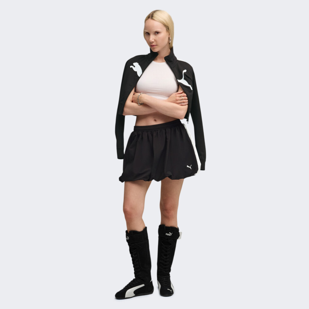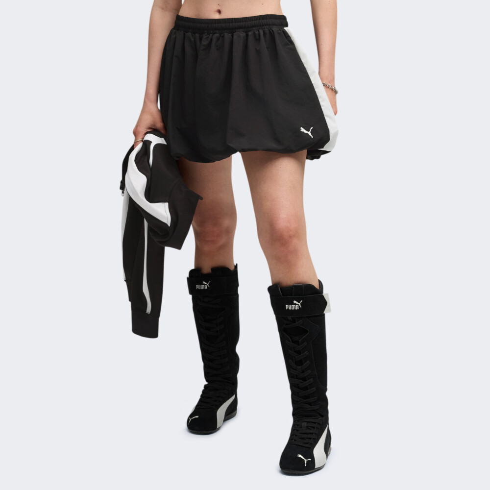 Спідниця Puma T7 Balloon Skirt — це стильна заява для сучасної дівчини, яка любить бути у центрі уваги та виражати себе через моду. Вона натхненна легендарним стилем, який завоював вулиці завдяки фірмовим 7-сантиметровим смужкам, що миттєво впізнавані серед шанувальниць бренду. Вона виготовлена з міцного та зносостійкого матеріалу, який витримає активний ритм сучасного життя. Об’ємний короткий крій надає образу легкості та грайливості, водночас не обмежуючи рухів, тож Ви зможете комфортно пересуватися у будь-яких ситуаціях. Еластичний пояс надійно фіксує спідницю, що забезпечує впевненість у кожному кроці. Вишукані смужки та елегантний логотип Puma додають образу спортивної естетики й підкреслюють Вашу прихильність до стилю легендарного бренду. Puma піклується про зниження впливу на довкілля, тому модель виготовлено з використанням перероблених матеріалів.