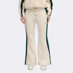 Колекція Puma T7 – це повернення до легендарного стилю, який підкорив вуличну моду завдяки своїм знаковим 7-сантиметровим фірмовим смужкам. Вона стала улюбленою серед тих, хто цінує гармонію спорту та вуличної естетики. Спортивні штани Puma T7 Flared Pants — це втілення жіночої сили, елегантності та любові до руху, яке поєднує спортивну класику з трендовою виразністю. Двосторонній жакард зачаровує текстурою й візуальною глибиною, огортає тіло м’якістю та дарує комфорт навіть у найбільш насичений день — чи то під час прогулянки містом, чи у моменти відпочинку. Розкльошений від колін крій формує жіночний, динамічний силует, який додає образу легкості та свободи, не обмежуючи жодного Вашого руху. Еластичний пояс із текстильним шнурком м’яко фіксується на талії, тому додасть впевненості кожному кроку. Місткі бічні кишені на блискавках дозволяють зберігати все необхідне при собі, залишаючи руки вільними для нових вражень. Поєднання бежевого з вставками зеленого додає образу благородної вінтажності та природної витонченості, а лаконічний логотип Puma підкреслить Вашу любов до легендарного стилю бренду. Puma піклується про зниження впливу на довкілля, тому модель виготовлено з використанням перероблених матеріалів.