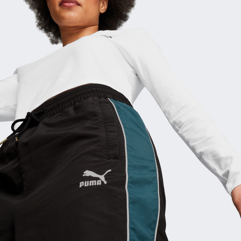 Спортивні штани Puma T7 Play.Paris. Track Pants Wv входять у лінійку одягу, яка була присвячена засновникам хіп-хопу та брейк-дансу, поєднуючи у своєму дизайні ретро стиль з паризьким колоритом. Вони виготовлені з якісного матеріалу, який гарантуватиме Вам комфорт протягом усієї прогулянки. Вільний розширений до низу крій дозволить Вам впевнено рухатись протягом дня. Еластичний пояс із текстильним шнурком сприятиме надійній фіксації на талії, а бічні кишені дозволять Вам завжди мати при собі корисні дрібнички. Спортивні штани відтворюють енергійний мікс мистецтва та вуличних перформансів, що зробить їх улюбленими у Вашому гардеробі. Puma піклується про зниження впливу на навколишнє середовище, тому матеріал моделі виготовлено з перероблених волокон, що є одним з кроків до кращого майбутнього.