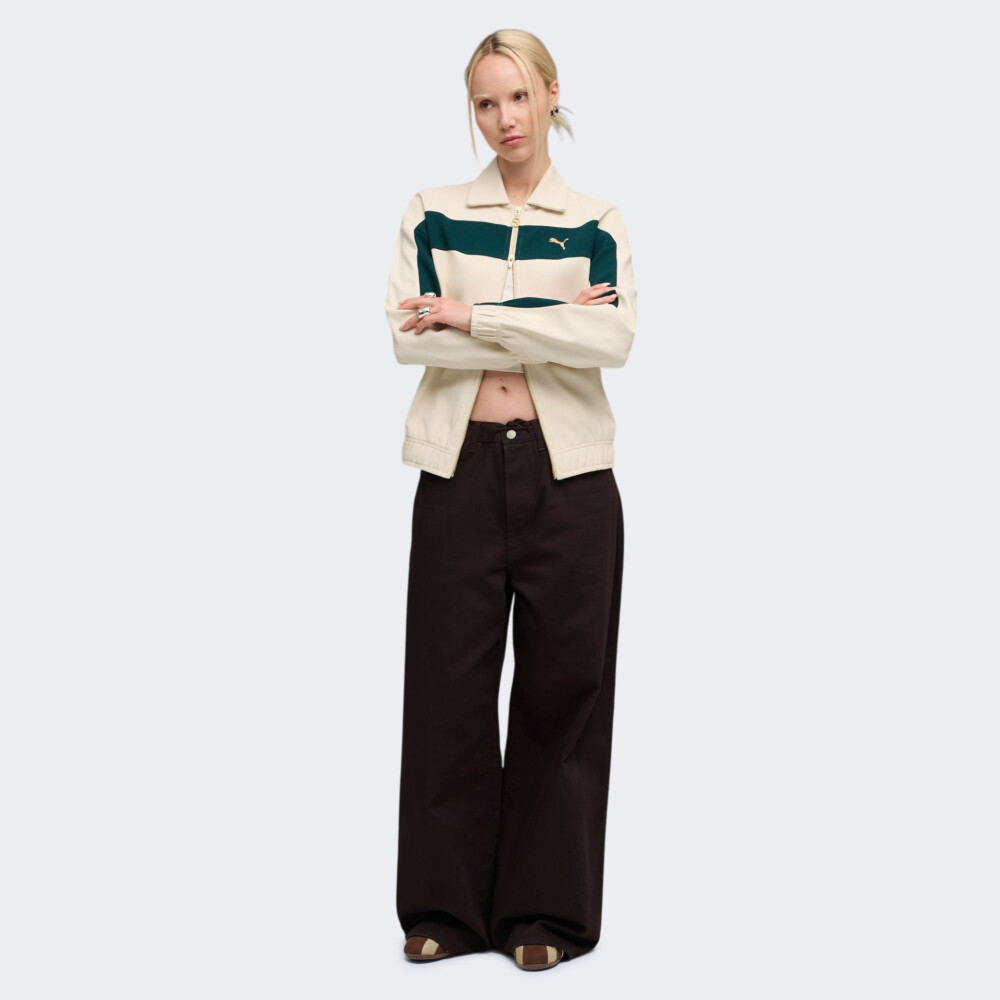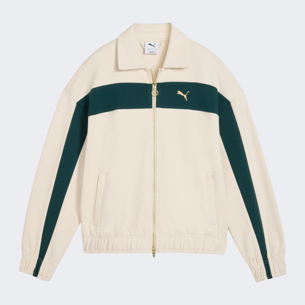 Колекція Puma T7 – це повернення до легендарного стилю, який підкорив вуличну моду завдяки своїм знаковим 7-сантиметровим фірмовим смужкам. Вона стала улюбленою серед тих, хто цінує гармонію спорту та вуличної естетики. Кофта Puma T7 Relaxed Track Jacket — це вдале поєднання спортивної класики та сучасної жіночності, створене для тих, хто впевнено йде власним шляхом. Тканина піке зачаровує м’якою текстурою та приємним відчуттям на тілі, забезпечуючи комфорт упродовж усього дня — чи Ви в русі, чи у моменті відпочинку. Вільний крій зі спущеними плечима та еластичними манжетами формує невимушений силует із виразним акцентом на розслаблену елегантність. Блискавка по всій довжині додає зручності та дозволяє легко адаптувати образ до зміни погоди чи настрою. А елегантний відкладний комір надає ретро-шарму, що гармонійно поєднується з актуальними модними тенденціями. Бічні кишені на блискавках ідеально підійдуть для зберігання дрібниць. Зелені акценти на бежевому фоні створюють вишукану вінтажну палітру, яка додає стилю глибини й характеру. Лаконічний логотип Puma підкреслить Вашу любов до легендарного стилю бренду. Puma піклується про зниження впливу на довкілля, тому модель виготовлено з використанням перероблених матеріалів.