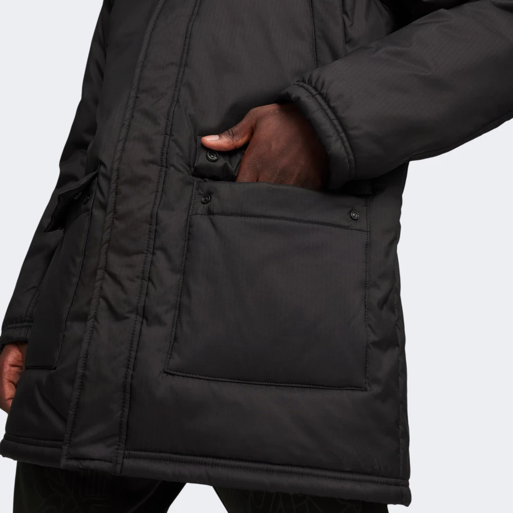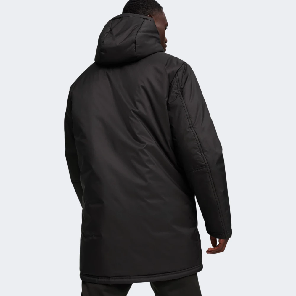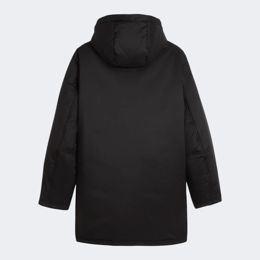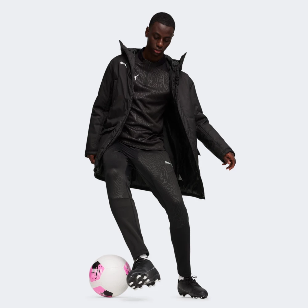 Куртка Puma teamFinal Winter Jacket створена для того, щоб Ви відчували себе затишно, відправляючись на улюблені тренування з футболу. Вона має зовнішній шар із якісних матеріалів та синтетичний утеплювач, що у поєднанні з технологією warmCELL ефективно утримує тепло, забезпечуючи відчуття затишку з першої хвилини перебування на вулиці чи футбольному полі. Подовжений крій надає додатковий захист від холоду та вітру, а капюшон, високий комір і штормовий клапан на кнопках поверх блискавки створюють максимальний комфорт за будь-якої погоди. Практичні кишені дозволяють зручно зберігати необхідні дрібниці або просто зігріти руки. Лаконічний логотип Puma підкреслює спортивний характер образу та сучасну естетику бренду, демонструючи Вашу відданість активному способу життя і любов до футболу. Puma піклується про зниження впливу на довкілля, тому модель виготовлено з використанням перероблених матеріалів.