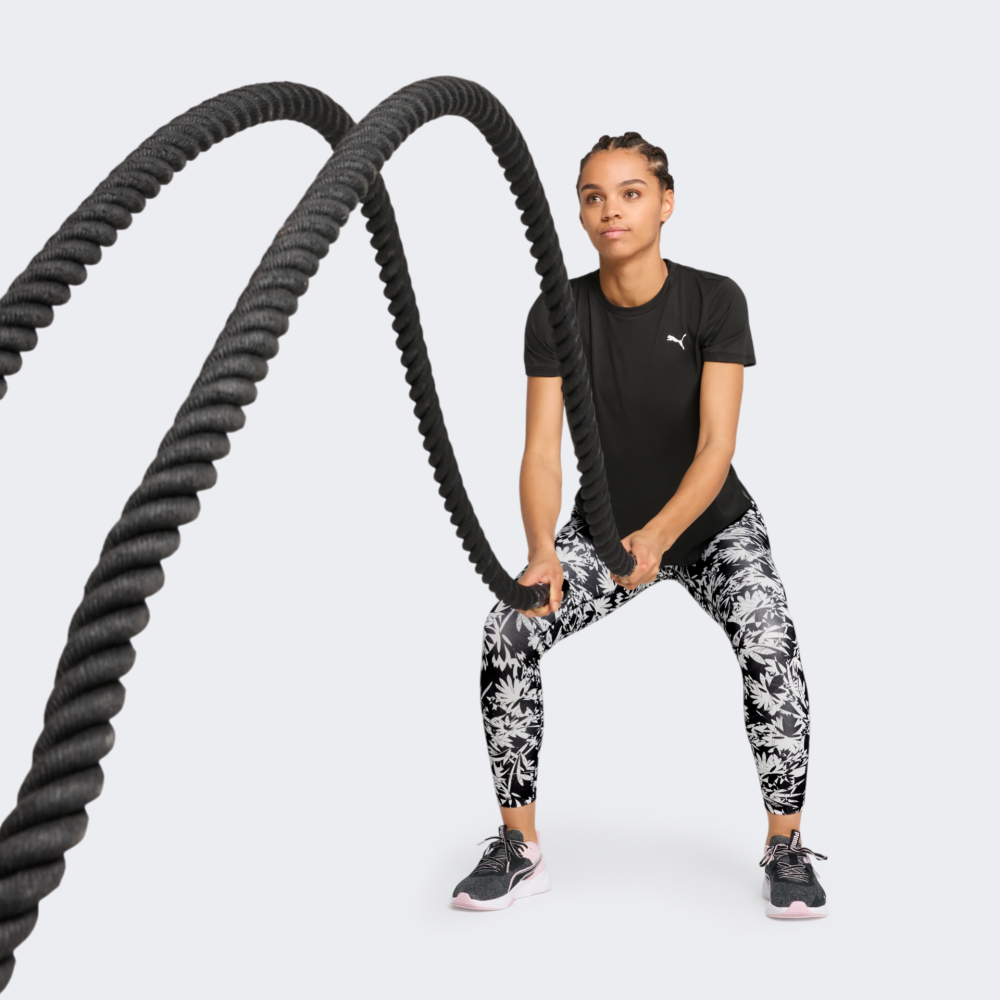 Футболка Puma W Tad Essential Crew Tee — це надійний партнер для тих, хто звик викладатися на повну під час тренувань і водночас прагне виглядати стильно. Вона створена для того, щоб забезпечити максимальний комфорт у русі та впевненість у кожному повторі. Футболка виготовлена з високоякісної технологічної тканини, яка ефективно відводить вологу та забезпечує чудову вентиляцію, залишаючи відчуття свіжості навіть під час найінтенсивніших занять. Ви зможете повністю зосередитися на результаті, не відволікаючись на дискомфорт. Класичний крій дарує повну свободу рухів, а подовжена спинка — впевненість під час нахилів, розтяжок чи занять на підлозі. Кругла горловина зі стрічкою на внутрішній частині коміра м’яко прилягає до тіла й не натирає, забезпечуючи ще більше зручності. Лаконічний дизайн з невеликим логотипом Puma додає образу спортивної елегантності й підкреслює Вашу відданість стилю, перевіреному мільйонами активних жінок по всьому світу. Puma піклується про зниження впливу на довкілля, тому модель виготовлено з використанням перероблених матеріалів.