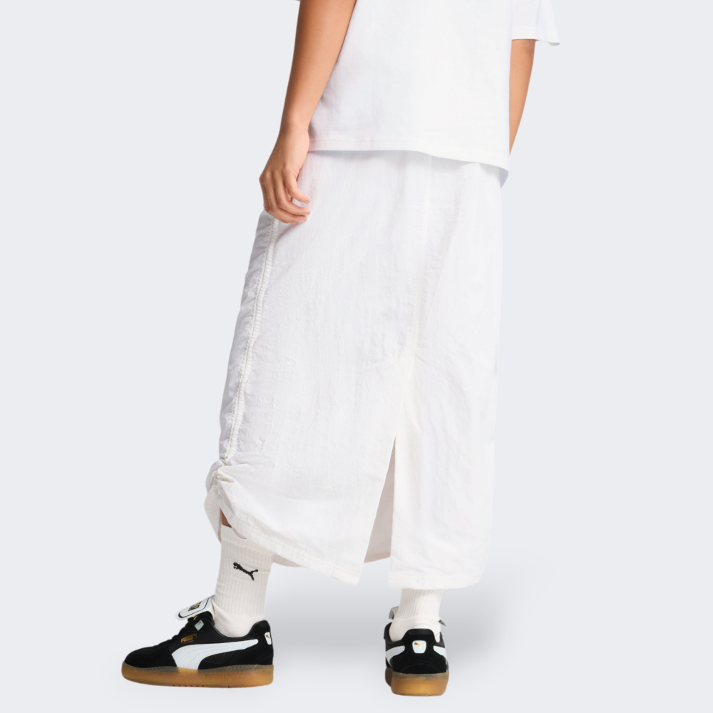 Спідниця Puma Wardrobe Ess Woven Maxi Skirt — це ідеальне втілення сучасної жіночності з елементами спортивного шику, яке відкриває безліч стильних можливостей на кожен день. Вона бездоганно поєднує легкість, свободу рухів і яскраву індивідуальність — саме те, що потрібно для насиченого міського ритму. Тканина з гладким переплетенням приємно лягає на тіло, даруючи відчуття свіжості та комфорту протягом усього дня. Вільний крій з елегантним розрізом ззаду забезпечує свободу рухів і додає образу динаміки та витонченості. Регульовані бічні шви зі шнурками дозволять змінювати довжину, створювати нову форму й адаптувати спідницю під настрій або нагоду — від невимушеної прогулянки до вечірнього виходу з друзями. Еластичний пояс м’яко фіксується на талії, даруючи впевненість у кожному кроці. Бічні кишені стануть практичним рішенням для зберігання необхідних дрібниць. Білий колір додає образу легкості, свіжості та особливої витонченості, а контрастний логотип Puma підкреслить Вашу любов до активного способу життя та сучасного стилю. Puma піклується про зниження впливу на довкілля, тому модель виготовлено з використанням перероблених матеріалів.