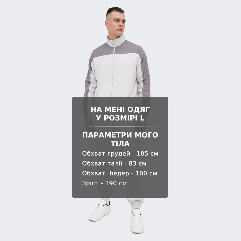 Спортивний костюм Puma Woven Colorblock Tracksuit — це вдале поєднання стилю, функціональності та абсолютного комфорту. Він стане надійним супутником як під час активного відпочинку, так і у повсякденних прогулянках, коли хочеться виглядати стильно й відчувати себе вільно. Модель виготовлена з синтетичного матеріалу, який приємно прилягає до тіла та забезпечує комфорт упродовж усього дня — незалежно від Вашої активності. Класичний крій не обмежує рухів, тому дозволить бути впевненим у кожному кроці. Манжети на рукавах, по низу кофти та на штанинах не лише додають завершеності образу, а й відповідають за зручну фіксацію. Бічні кишені — практичне рішення для зберігання дрібниць, які завжди повинні бути під рукою. Кофта на блискавці по всій довжині легко одягається та знімається, а комір-стійка додає спортивного шику та захищає від вітру. Штани оснащені еластичним поясом, який забезпечує ідеальну посадку без дискомфорту. Поєднання світлих і темних відтінків сірого надає образу енергії та динаміки, а фірмові логотипи Puma підкреслять Вашу любов до спортивної моди легендарного бренду. Puma піклується про зниження впливу на довкілля, тому модель виготовлено з використанням перероблених матеріалів.