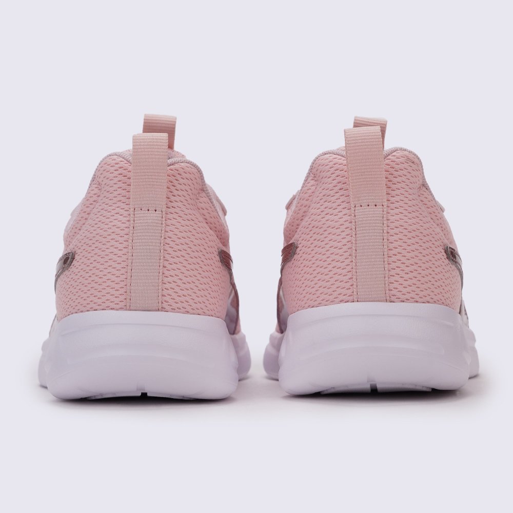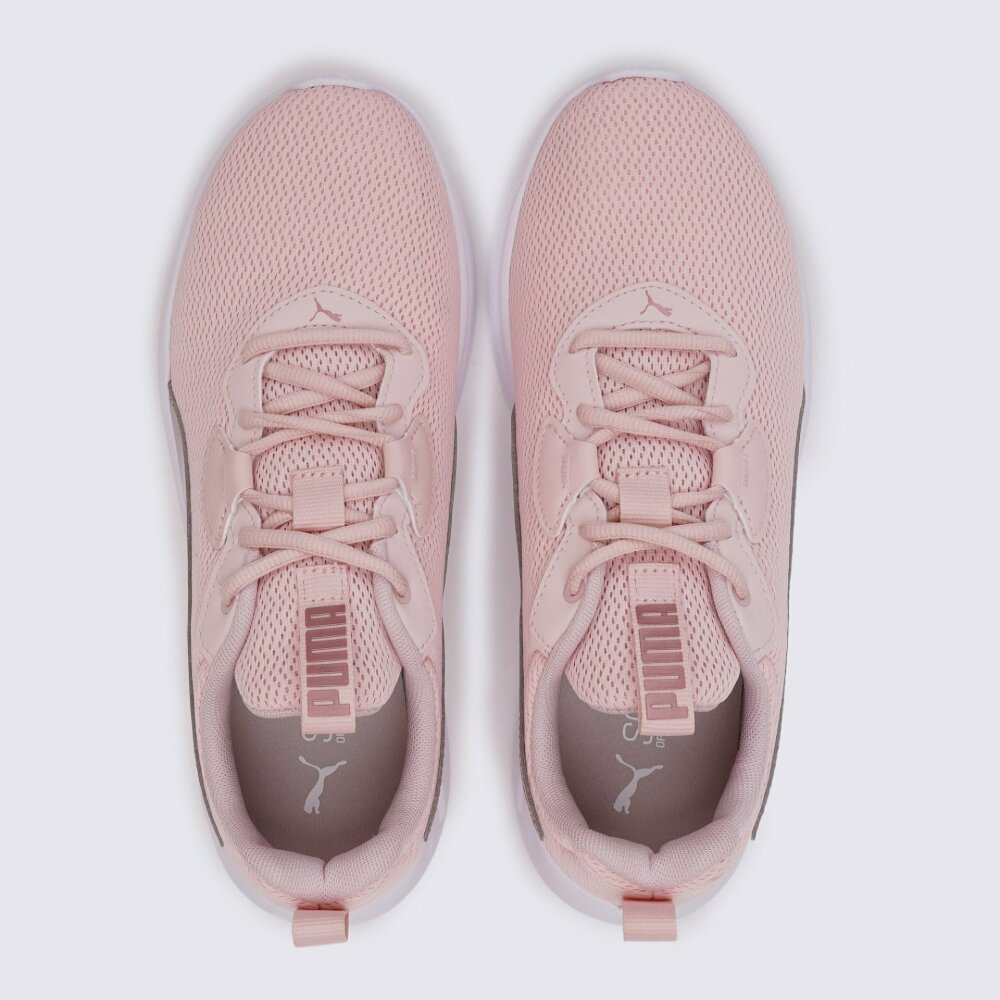 Універсальні жіночі спортивні кросівки забезпечують комфорт під час бігу завдяки м'якому піноматеріалу підошви. Легкий трикотажний матеріал поверхні та підкладки охоплює стопу, забезпечуючи проникнення повітря та надійну підтримку, а мінімалістичний дизайн підходить для будь-якої ситуації. Оптимальні кросівки для створення повсякденних образів. Підошва з матеріалу ЕВА створена для стабілізації і плавних рухів стопи, а борозни в протекторі нададуть природної гнучкості стопі. Перепад підошви між передньою і задньою частиною складає 1,2 см. Стандартна система шнурівки з текстилю, розташована по центру, забезпечує добре облягання і надає стійкості нозі. Кросівки декоровані логотипами компанії сріблясто-коричневого кольору.