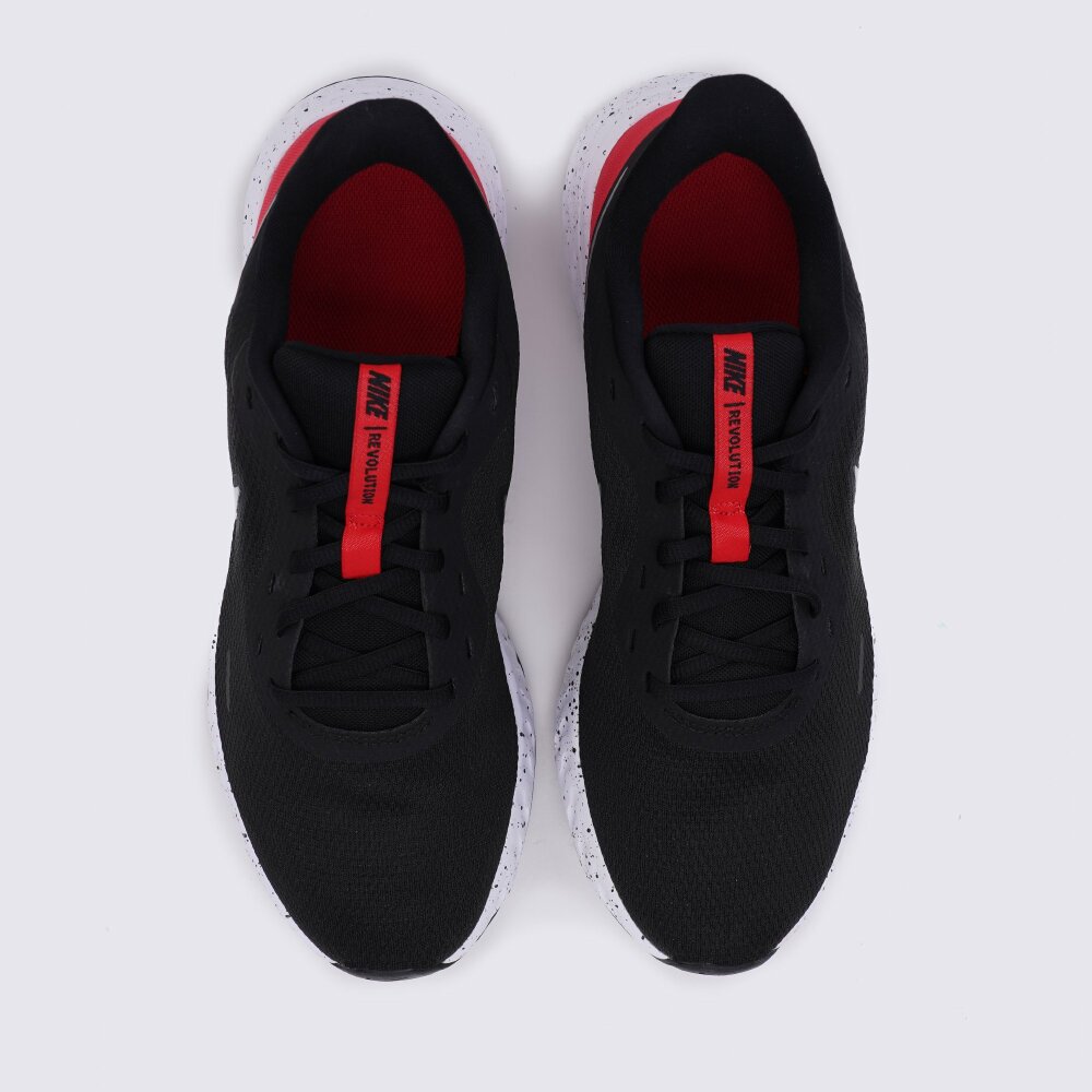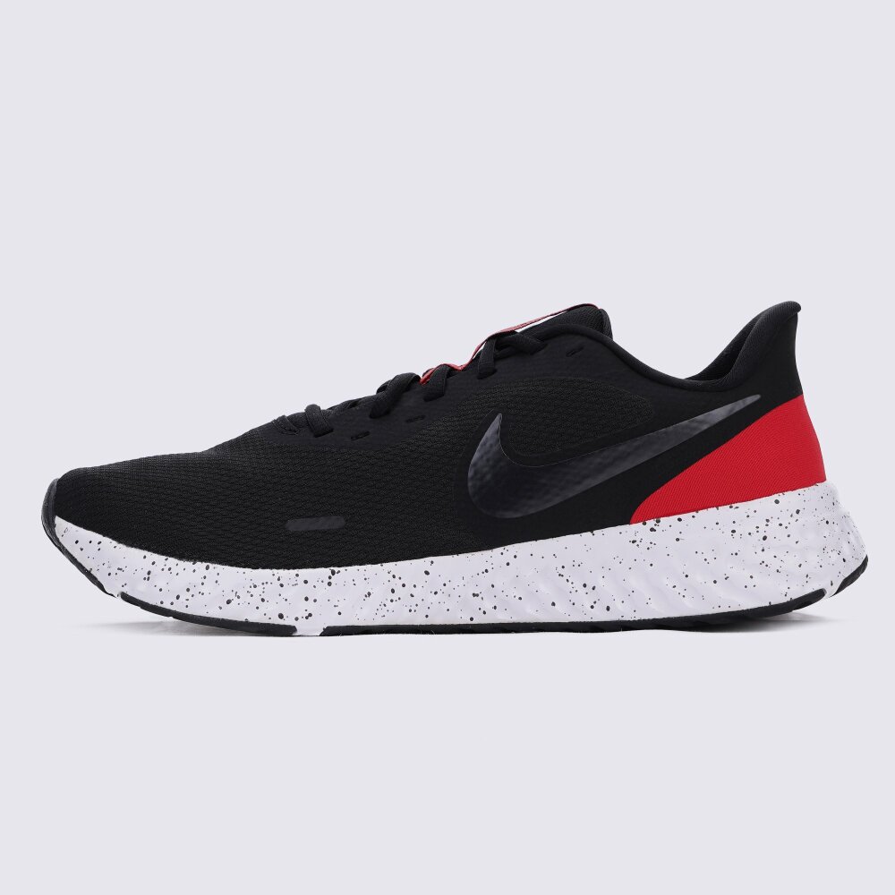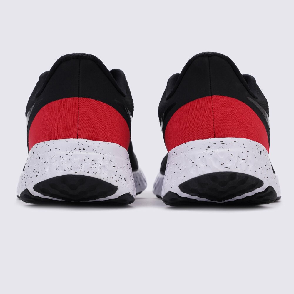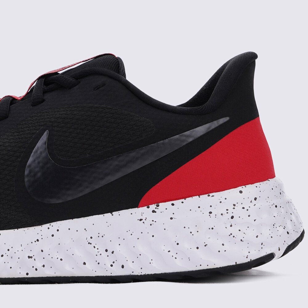 Nike Revolution 5 - сучасні спортивні кросівки, виготовлені із високоякісних матеріалів, поверхня, устілки та підкладка текстильна. М'який легкий спінений матеріал підошви надає кросівкам достатню пружність. Підошва має проміжний шар для максимальної амортизації та пружності під час активного використання. Верхня частина кросівок формостабільна та добре циркулює повітря. Внутрішня конструкція та м'який кант ідеально підійдуть на кожен день. Устілка контрастного червоного кольору. Кросівки добре тримаються на нозі, фіксуються за допомогою шнурівки. Дана серія спортивного взуття повністю справляється зі своїми завданнями при зайнятті спортом і виглядає сучасно, можна носити протягом всього дня.