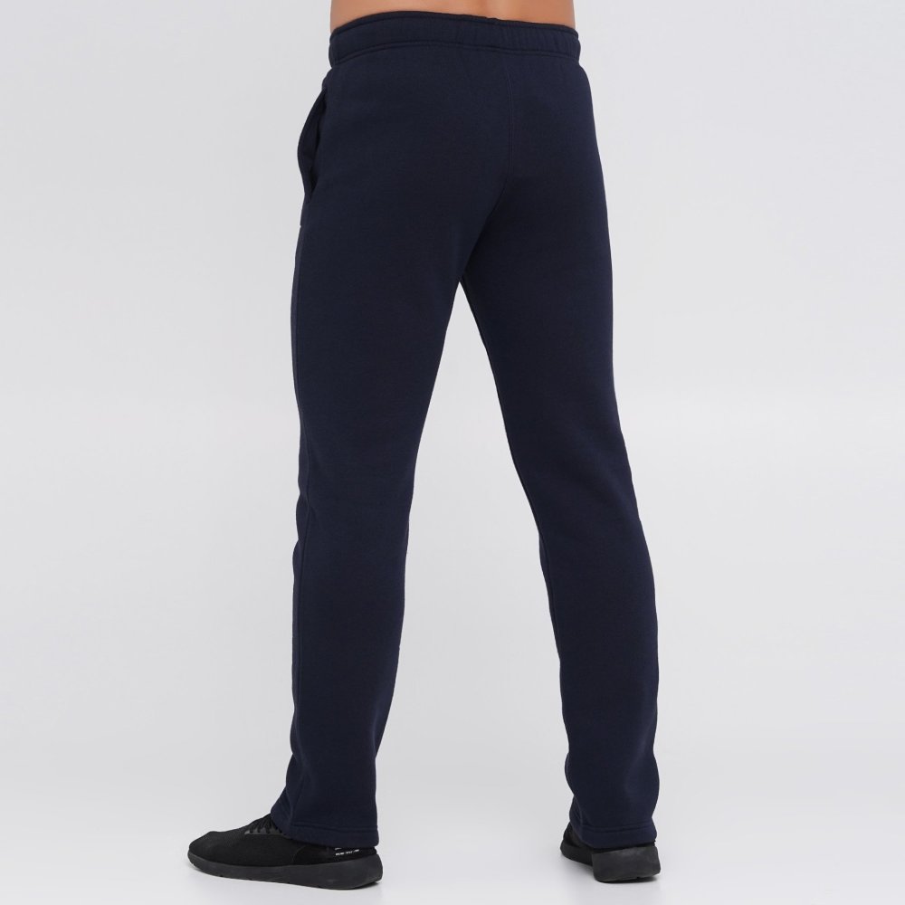 Зручні трикотажні спортивні брюки на флісі прямого крою. Штани без манжетів, ідеально підійдуть для занять спортом та щоденного використання. Посадка середня по лінії талії. На тілі тримаються завдяки еластичному поясу. Зпереду - дві кишені. Прикрашені логотипом бренду.