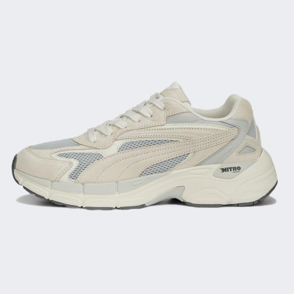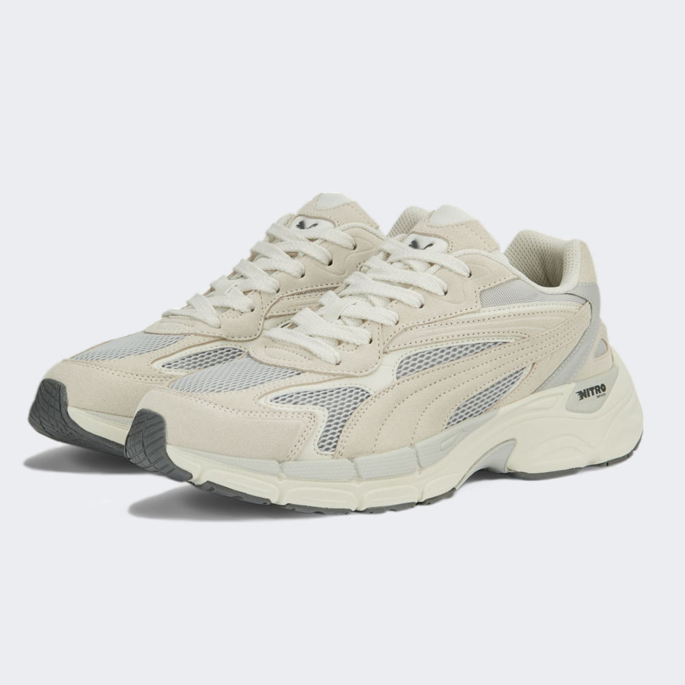 Кросівки Puma Teveris Nitro - це нова високотехнологічна модель. Сучасний дизайн натхнений естетикою успішної бігової лінійки 2000-х, виглядає стильно та легко поєднається зі спортивними та повсякденними образами. Проміжна підошва на основі технології Nitro забезпечує легшу вагу взуття, високу амортизацію та легкість руху. Гумова підметка забезпечує зчеплення в будь-якому напрямку. Сітчастий верх взуття прекрасно дихає, не дозволяючи нозі впрівати. Додаткові накладки додають моделі стилі та значно збільшують термін експлуатації взуття. М'який матеріал коміра в задній частині взуття захищає ногу від натирань. Відмінний варіант на кожен день - подарує легкість і комфорт у щоденному використанні. Дизайн взуття доповнюють фірмові смужки Puma Formstrip.