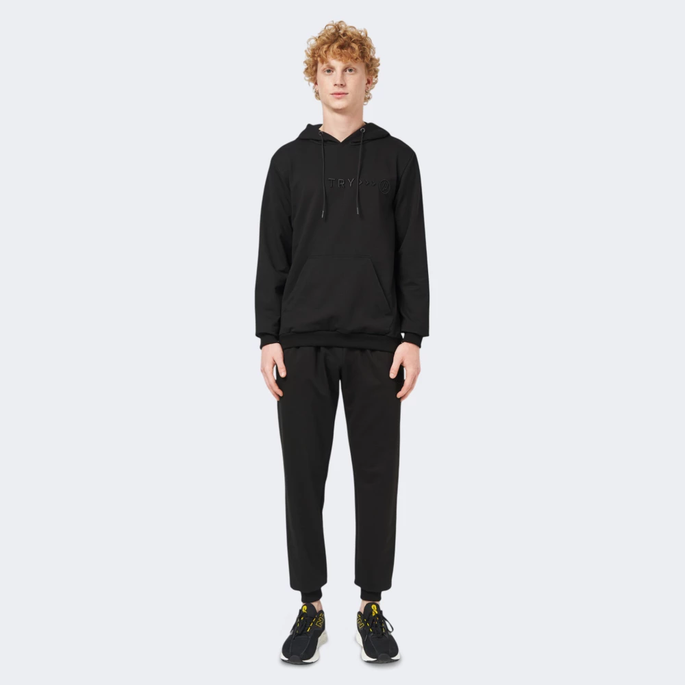 Спортивний костюм Тризуб Try Basic Suit створений для моментів, коли важливо залишатися в гармонії з собою — у затишку ранкового світла, у тиші вечірніх вулиць, або в динамічному ритмі дня. М’яка, приємна на дотик тканина дарує відчуття комфорту незалежно від Вашої активності — на прогулянці, вдома чи в дорозі назустріч новим пригодам. Класичний крій з еластичними манжетами надає зручну посадку та не сковує Ваших рухів, тож Ви зможете сміливо долати будь-які виклики дня. Кофта має капюшон з текстильним шнурком, що сприятиме захисту від раптових змін погоди. Кишеня-кенгуру додає практичності, адже дозволить зберігати дрібниці та зігріти руки. Штани з еластичним поясом та бічними кишенями створені для повсякденної зручності. Вишитий мотиваційний напис Try та лаконічний логотип — це Ваші особисті символи сили, витримки та віри в себе.