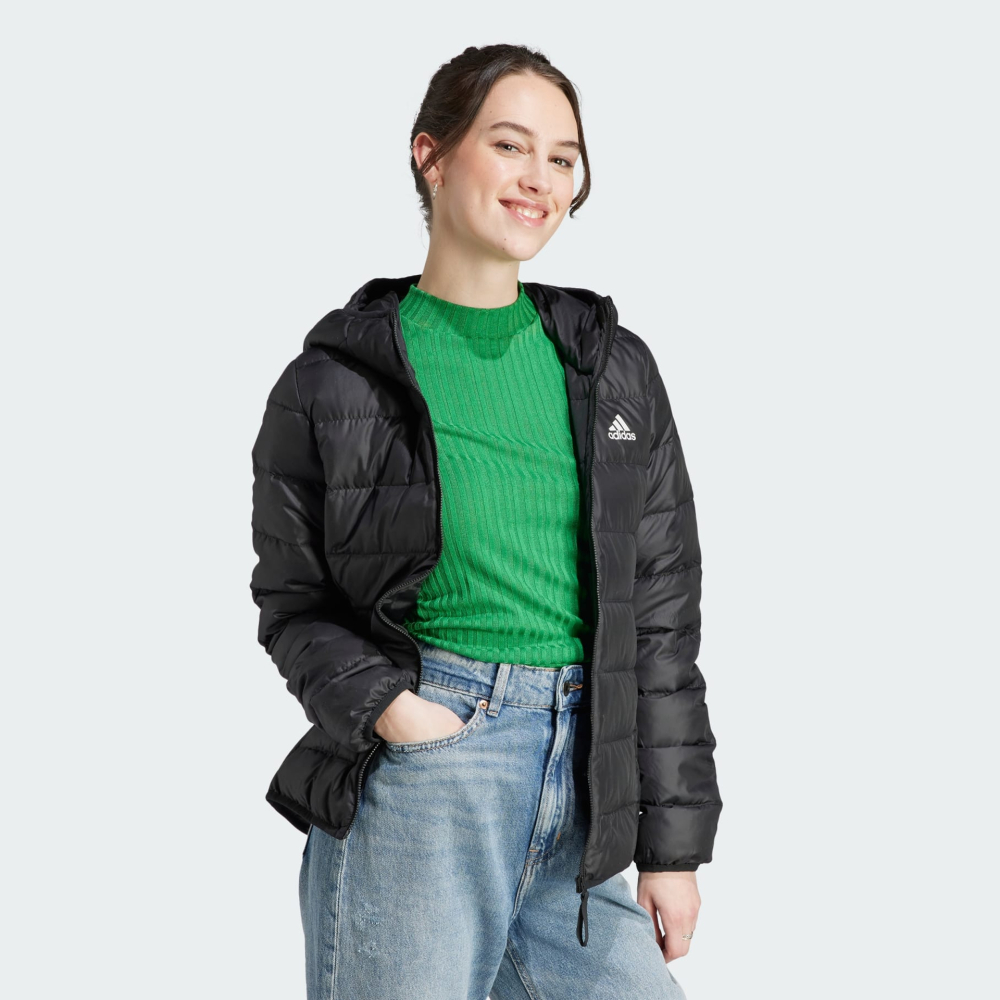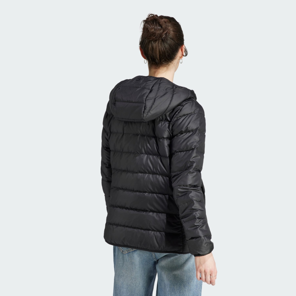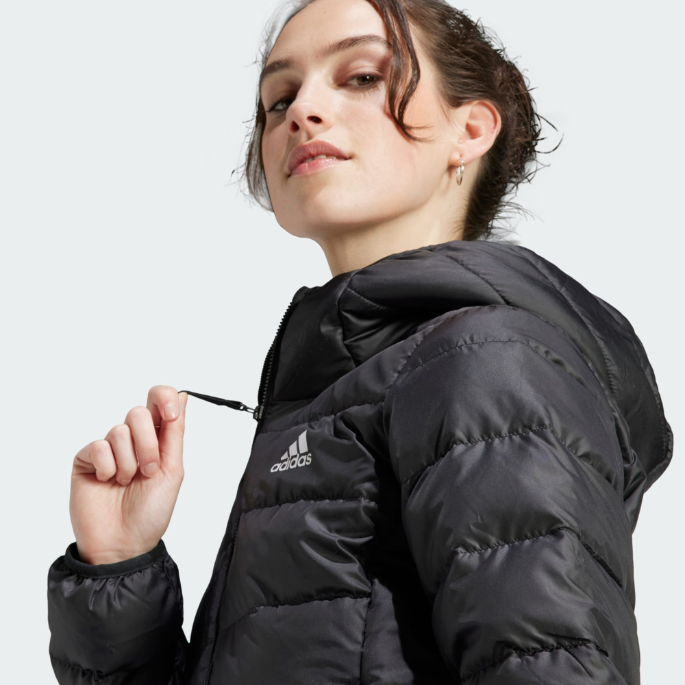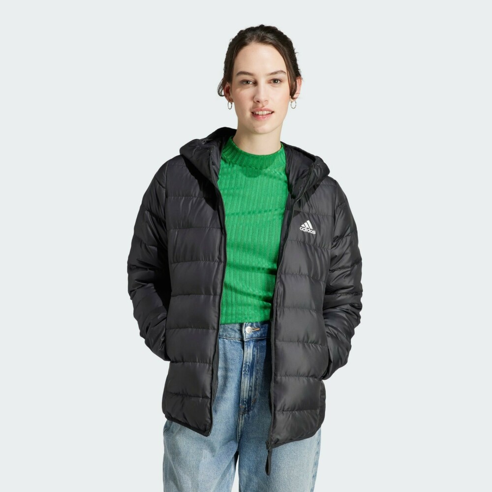 Колекція Adidas Sportswear змішує спорт і стиль, в ній новітні розробки поєднуються з естетичним зовнішнім виглядом, комфортом та універсальністю. Пуховик Adidas W Ess L D Ho J має лаконічний дизайн, який легко доповнить Ваш повсякденний образ та захистить від холоду. Він виготовлений з якісного матеріалу, який має водовідштовхувальну поверхню PFC-free, а наповнювач, який складається з качиного пуху та пера, гарантуватиме легкість і збереження тепла. Високий комір пуховика та капюшон забезпечать кращий захист у вітряну погоду, а тонкі манжети на рукавах та по низу запобігатимуть потраплянню холодного повітря всередину. Приховані кишені на кнопках у бічних швах дозволять мати при собі потрібні речі. Пуховик декоровано невеликим логотипом, який підкреслюватиме Вашу прихильність до спортивного стилю бренду. Adidas піклується про зниження впливу на довкілля, тому модель містить щонайменше 70% перероблених волокон, що є лише одним з рішень, які допомагають покласти край пластиковим відходам.