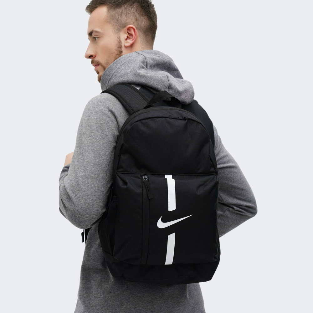Рюкзак Nike Academy Team поєднує в собі функціональність та зручність, що дозволить легко переносити все необхідне спорядження для тренувань з футболу. Він виготовлений з якісного матеріалу, який є досить легким у догляді, оскільки забруднення достатньо протерти вологою тканиною. Основне відділення вмістить усе необхідне спорядження, а передня кишеня на блискавці призначена для перенесення вологих речей окремо від основного вмісту. Бічна сітчаста кишеня для пляшки з водою дозволить швидко втамувати спрагу, коли виникне така потреба. Спинка рюкзака і м'які плечові ремені створюють комфортне відчуття під час перенесення на спині. Рюкзак декорований контрастною стрічкою та логотипом, який підкреслюватиме Вашу прихильність до спортивного стилю Nike.
