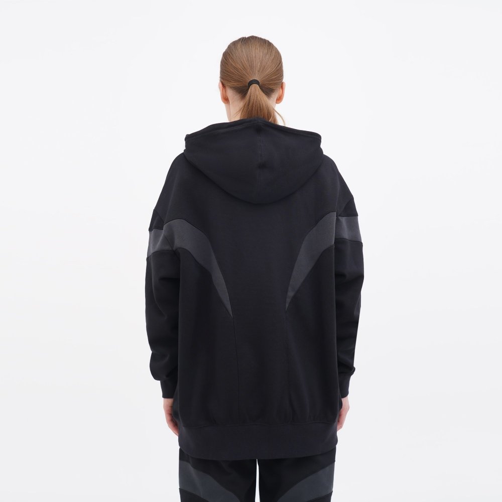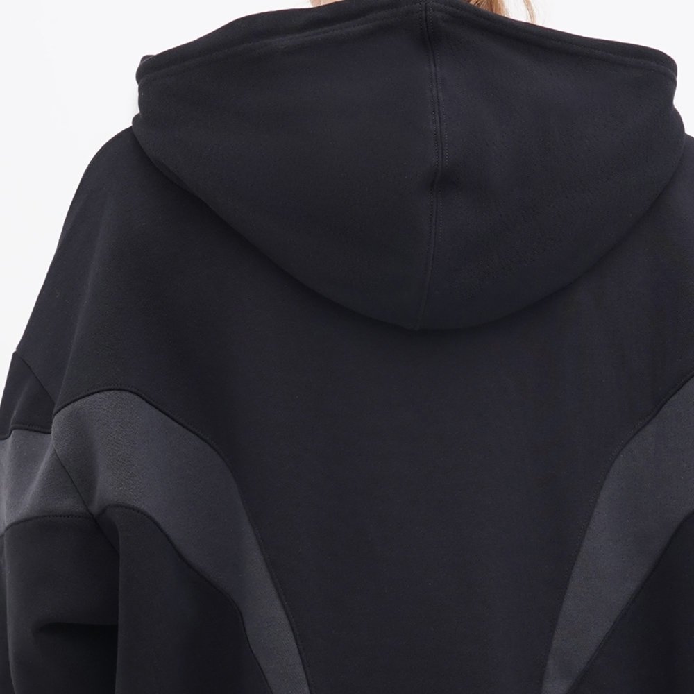Стильний трикотажний худі, виготовлений із високим вмістом бавовни, без начісу. Оригінальний дизайн виробу робить його актуальним при створенні сучасних образів. Вшитий капюшон має текстильну підкладку та внутрішню куліску для оптимального регулювання посадки. Широкі еластичні манжети знизу виробу та на рукавах. Худі декорований вишитими та принтованими логотипами бренду.