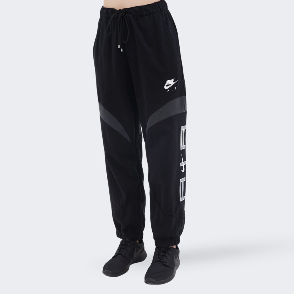 Жіночі флісові джогери мають класичний спортивний дизайн. М'який та легкий фліс із начісом ідеально підходить для повсякденного носіння. Штани мають глибокі функціональні кишені з обох боків, еластичні манжети по низу виробу. Пояс із куліскою всередині для регулювання посадки. В якості декору виступає малюнок Nike Air на штанині зі світловідбиваючою заливкою та набивним контуром.