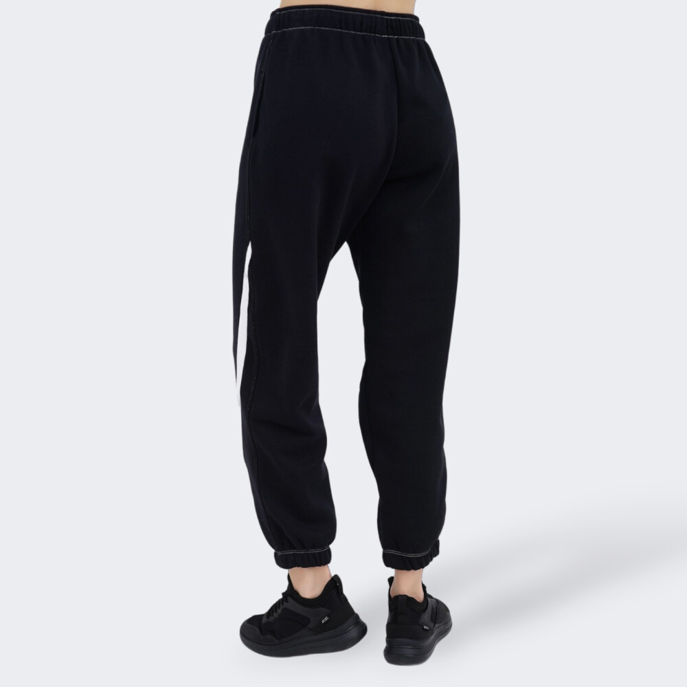 Жіночий спортивні джогери вільного крою. Зсередини утеплені флісом. Зпереду розташовні зручні кишені. Пояс на резинці з текстильним шнурком та резинки-манжети внизу штанин забезпечують зручну посадку. Декоровані контрастними строчками і крупними принтами логотипів бренду.