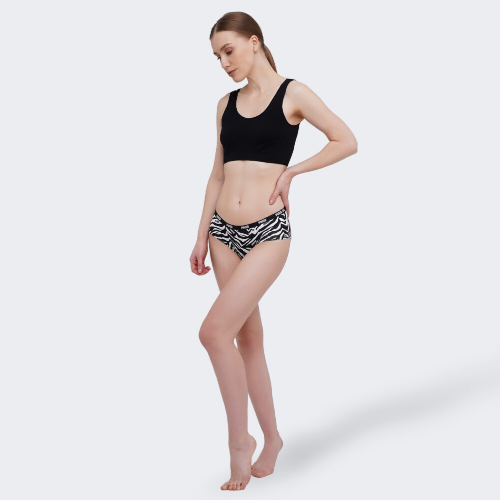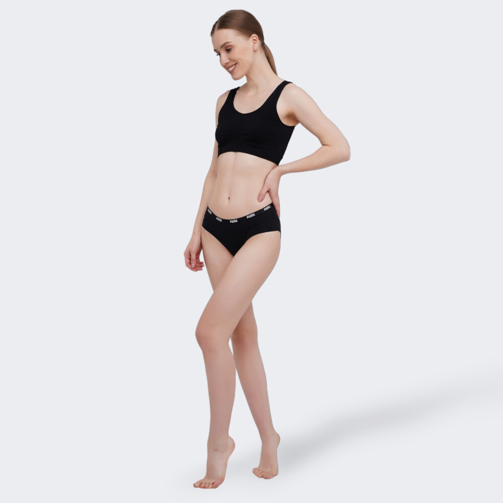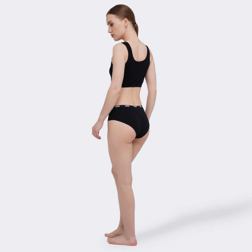 Набір спідньої білизни Puma Women Printed Aop Hipster 2p Packed складається з двох пар: одні з яких однотонні, інші з тваринним принтом. Вони поєднують у собі два світи: моди та спорту, що робить їх ідеальним вибором для повсякденного носіння. Вони виготовлені з якісного матеріалу, який є приємним до шкіри й подарує комфортні відчуття протягом усього дня. Приталений крій у поєднанні з еластаном, який входить у склад тканини, та низькою талією з повним покриттям нададуть необхідну підтримку при повній свободі рухів. Тонкий еластичний пояс гарантує надійну фіксацію та посадку, що надасть Вам впевненості в будь-якій ситуації. Пояс декоровано повторюваним написом Puma.