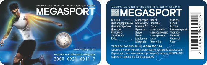 - Програми лояльності MEGASPORT працюють на території магазинів «MEGASPORT» та інтернет-магазину.